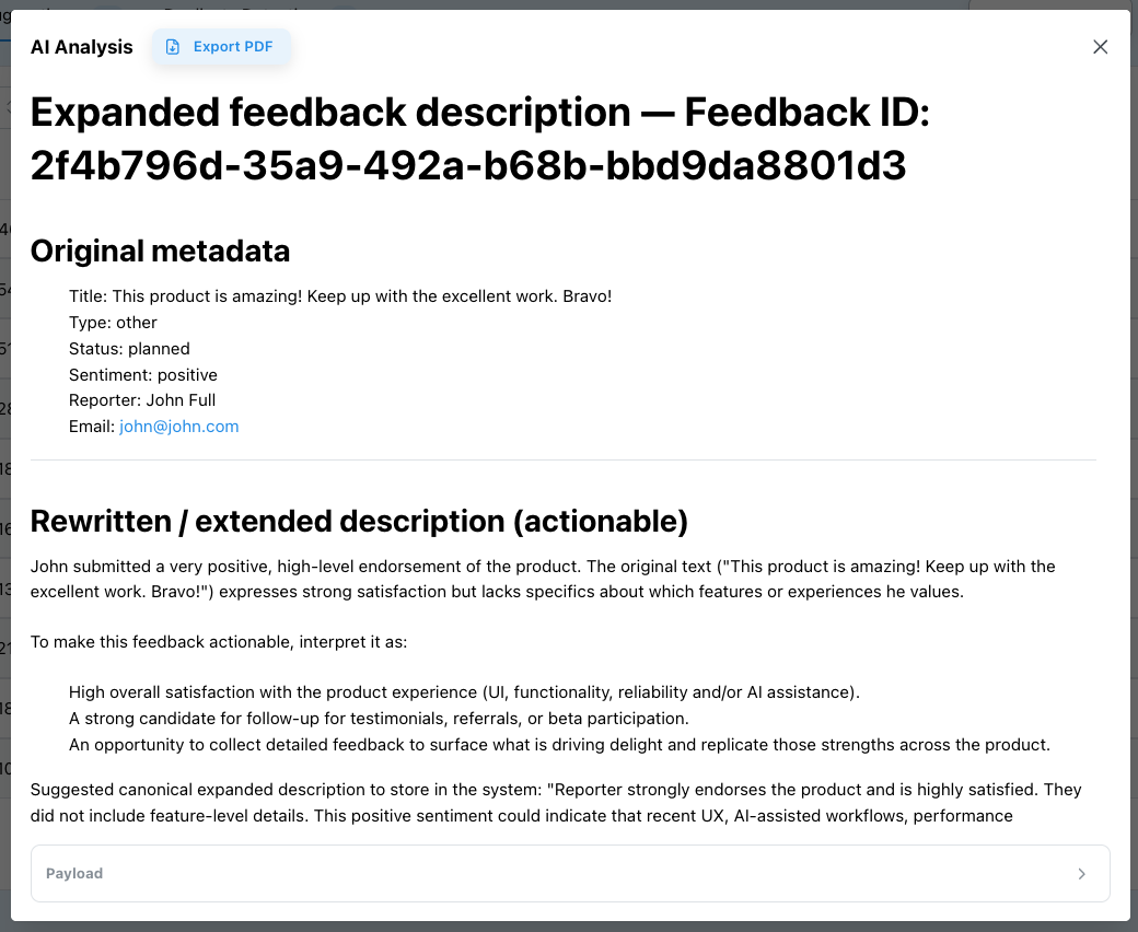 AI Feedback Analysis | Automatically categorize and sentiment-tag thousands of user responses in seconds. Our AI identifies key pain points and emerging trends so you don't have to read every single comment manually. | |