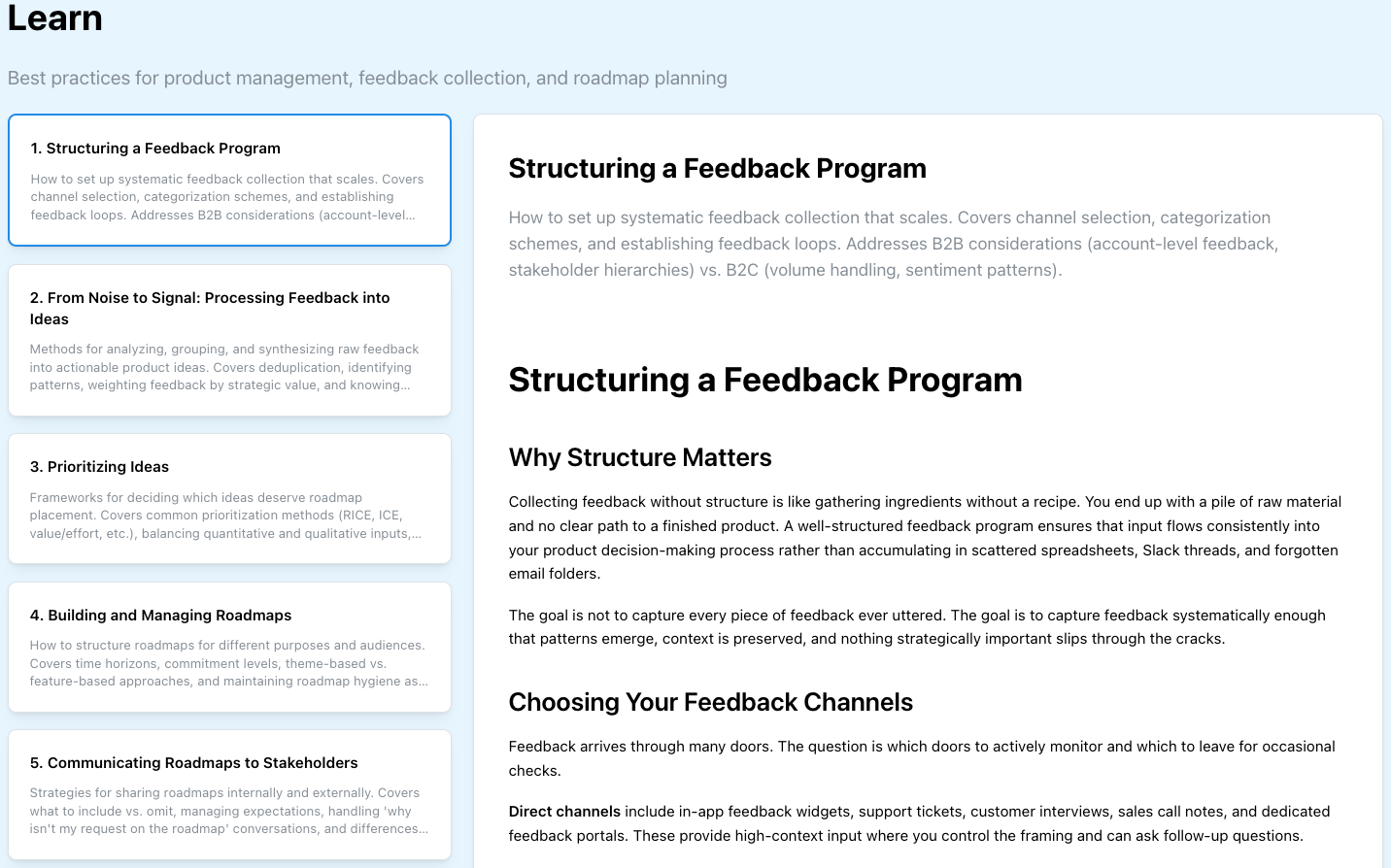 Learning Section | Level up your product thinking. Bite-sized guides and frameworks help teams make better decisions faster. | |
